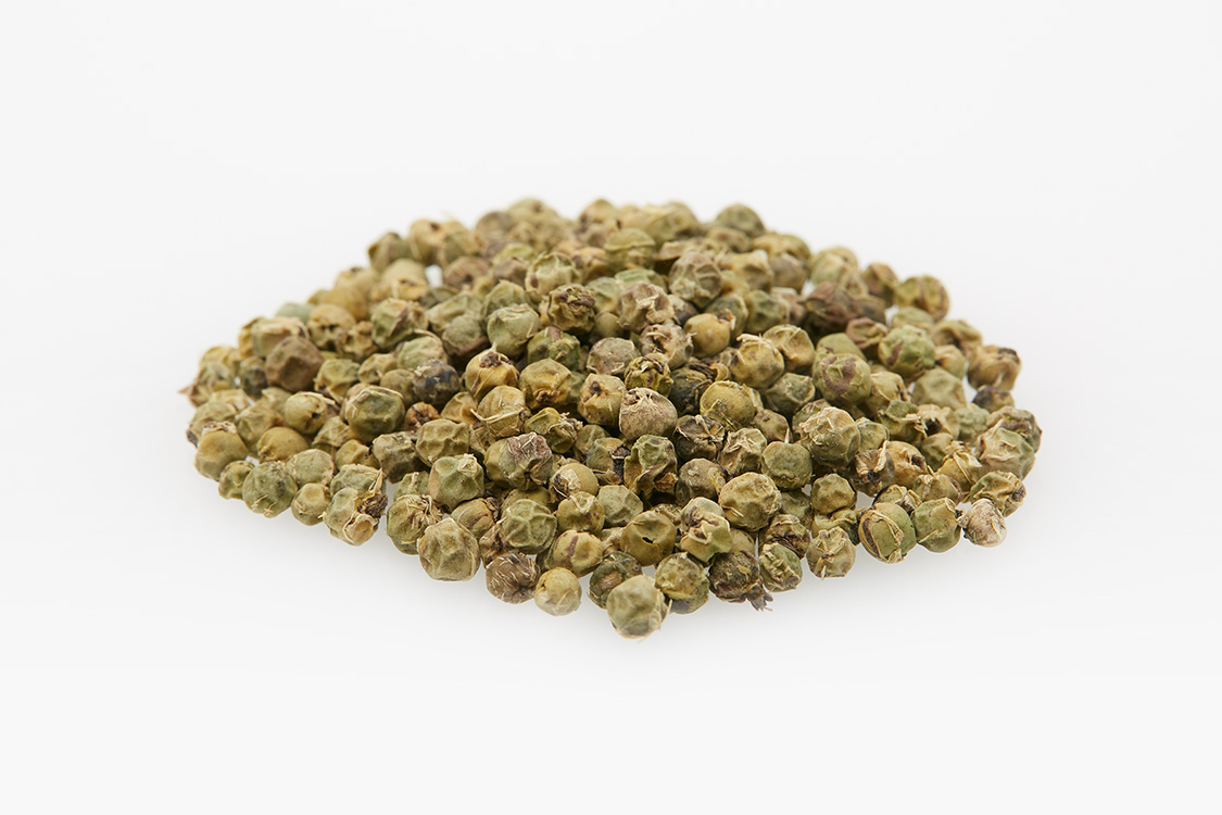 Le poivre vert offre un goût doux et est moins piquant que le poivre noir. Il est généralement utilisé pour assaisonner les plats de poisson et de volaille.