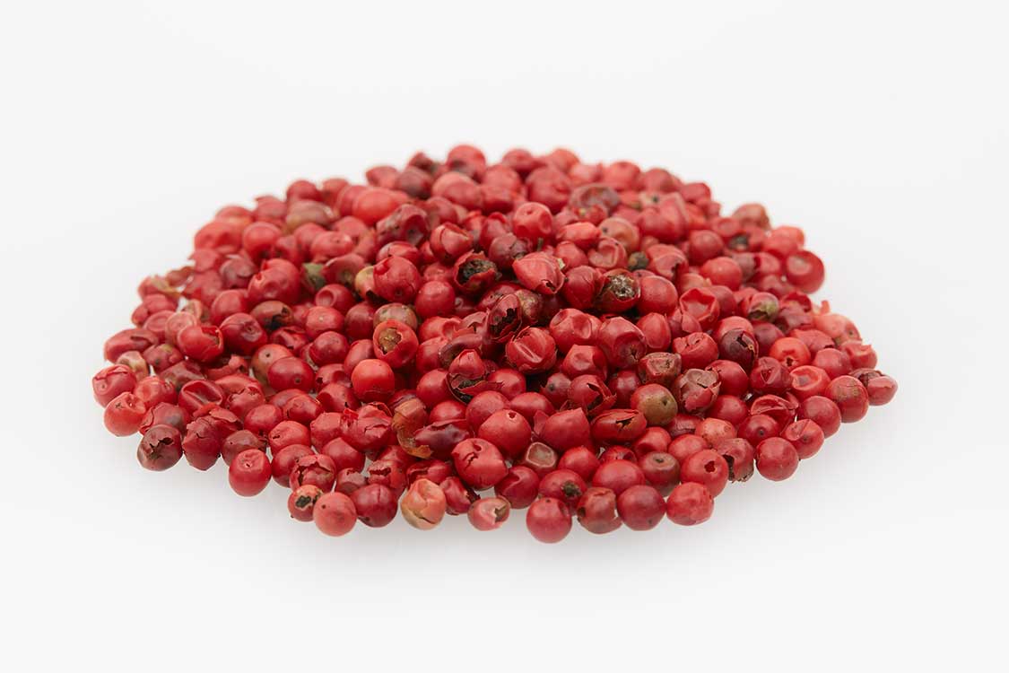 Pink Peppercorn offers a mild, fruity taste, less pungent in flavor and heat compared to Black Pepper. Typically added to foods after the cooking process, this spice is packed with vitamins, calcium, and vital nutrients.